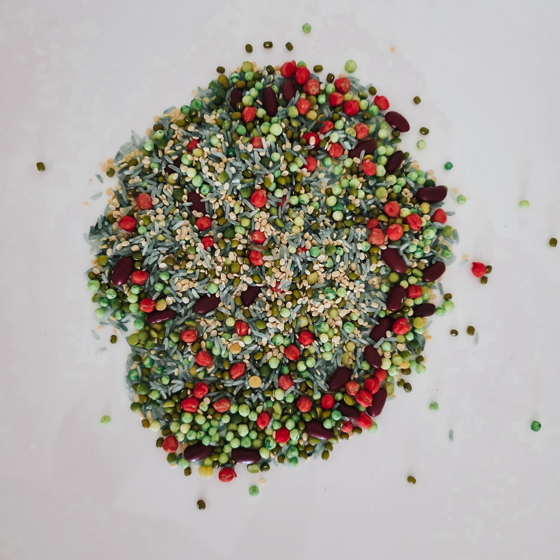 Ingredients: Long Grain Rice, lentils, beans, Food Dye and Vinegar