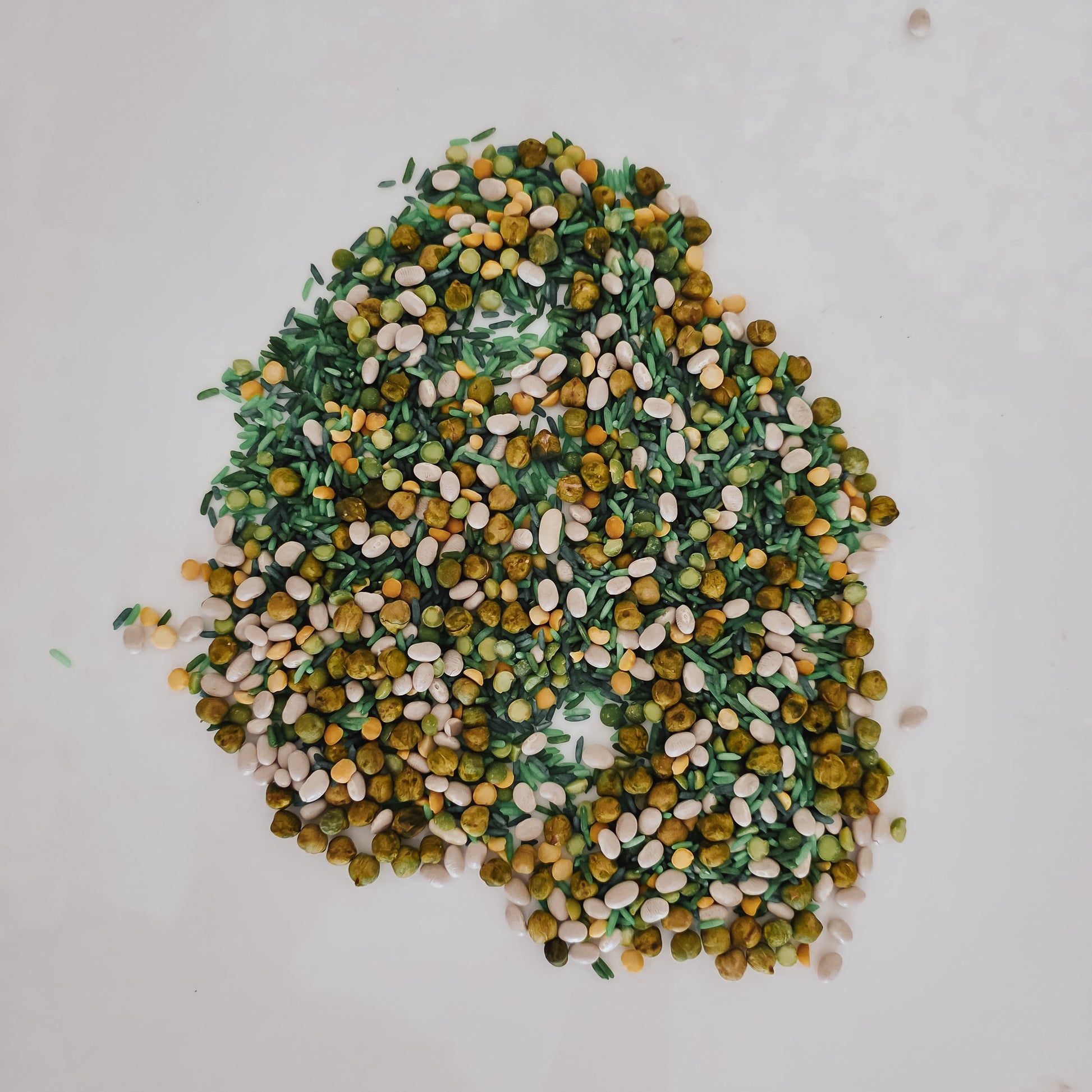 Ingredients: Long Grain Rice, split peas, chickpeas, beans, Food Dye and Vinegar