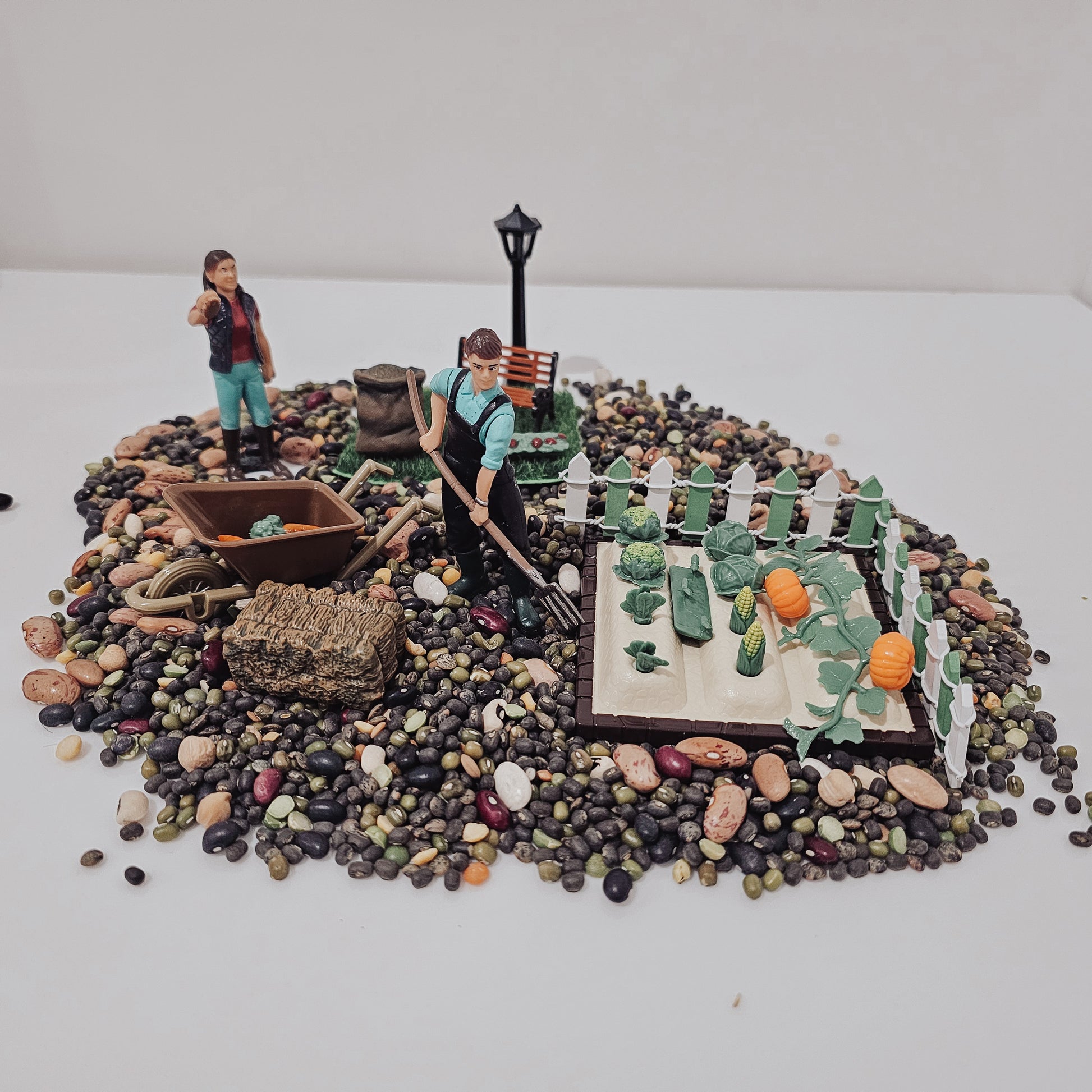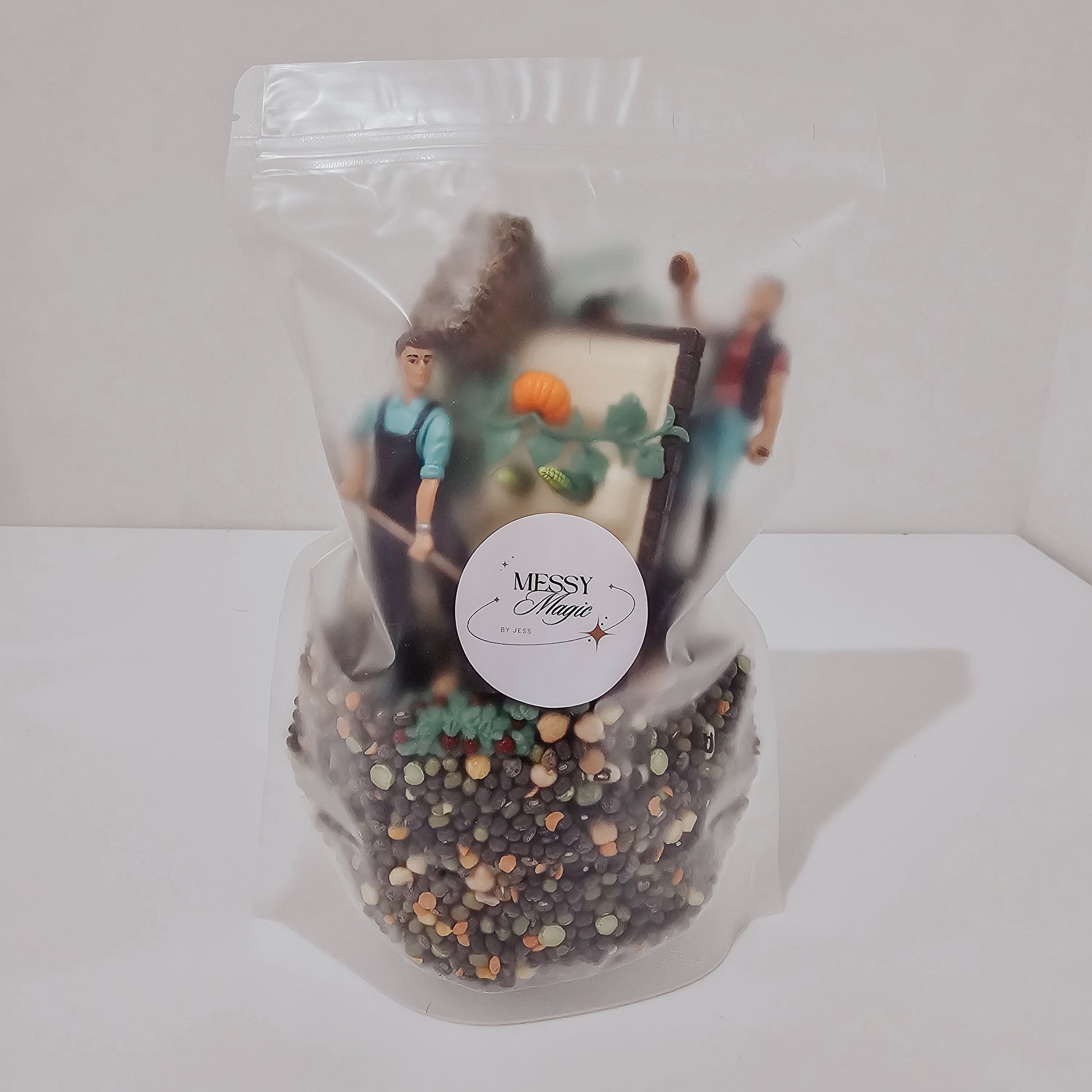 Veggie Garden is a pour and play made up of our base dirt patch and some garden themedpueces. Colours may vary to my photos as each batch is dyed and mixed per order.